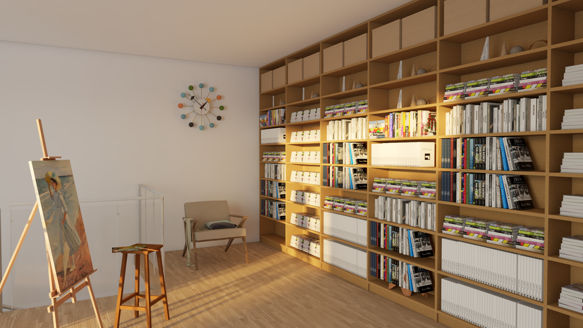 Una escalera helicoidal escultórica articula el recorrido vertical, funcionando como metáfora del proceso creativo: ascendente, continuo e introspectivo.