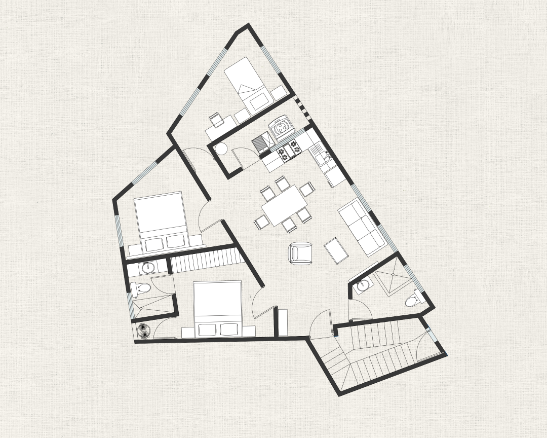 El diseño interior apuesta por un estilo contemporáneo y minimalista, con influencia escandinava. Se utilizan: