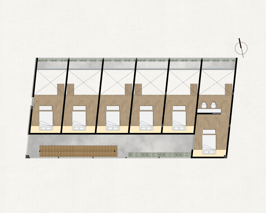 -El proyecto incorpora vegetación en el perímetro exterior inmediato, generando una transición suave entre interior y exterior.