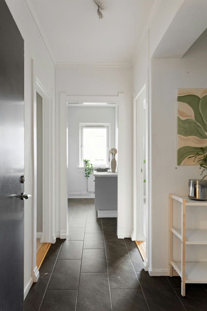 El piso es uno de los elementos más importantes en la percepción de un espacio. Aunque no siempre lo notamos de manera consciente pero es de las primeras superficies que vemos al entrar a un lugar. Por eso, en espacios reducidos se recomienda utilizar formatos grandes —40×40, 50×50, 60×60, 1.20×60, entre otros— ya sea en porcelánico, porcelanato, laminado, madera o vinílico. Los formatos pequeños tienden a fragmentar visualmente el área y hacen que se perciba aún más pequeña (con excepción del baño, donde pueden funcionar por proporción y uso).