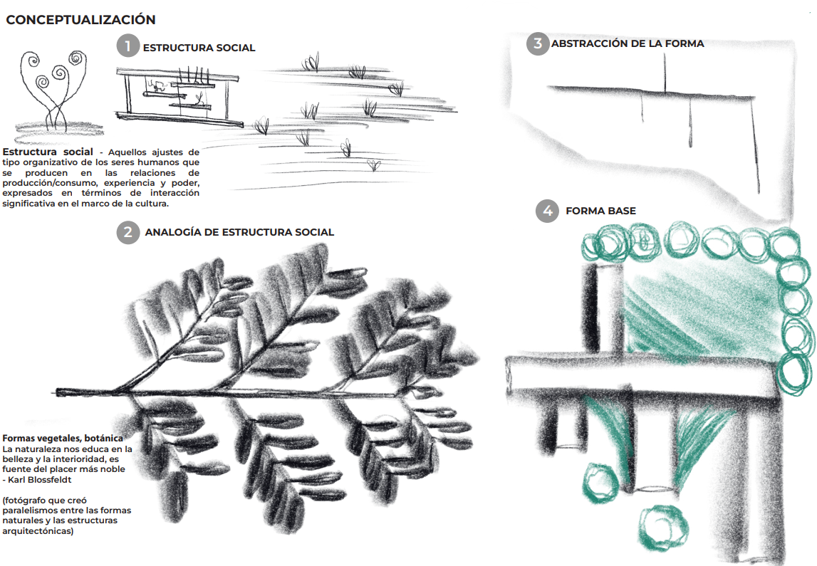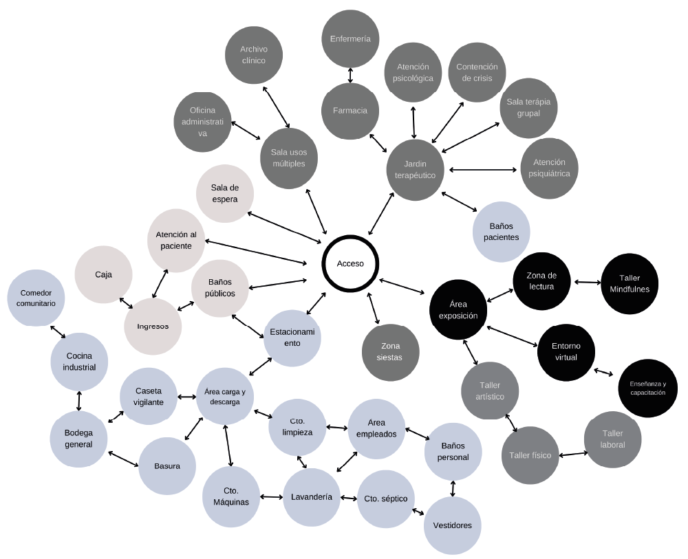 Fase conceptual del proyecto y diagrama de flujo de los espacios